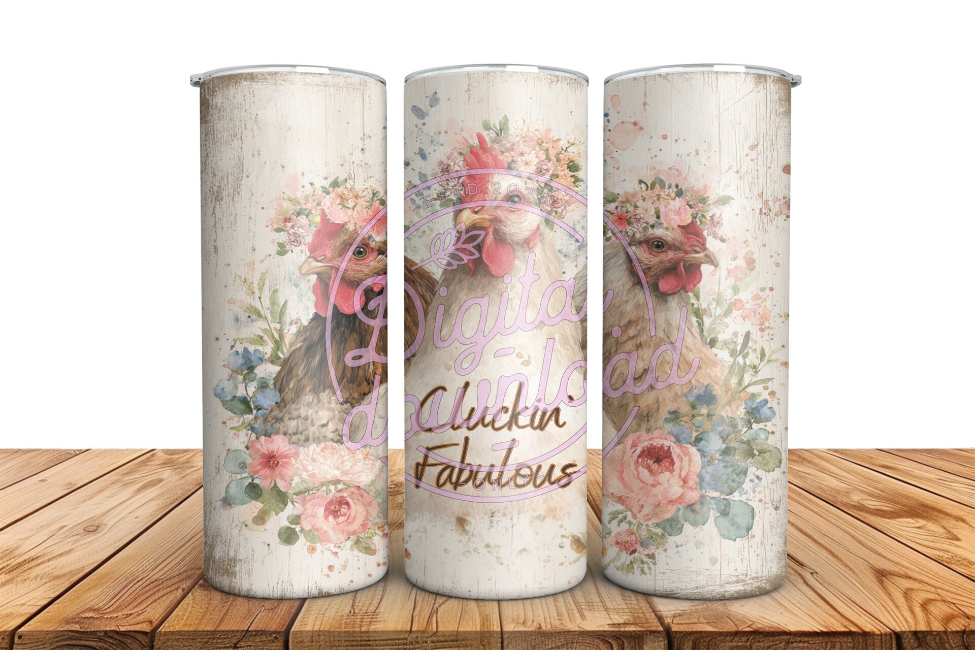 Turn heads and ruffle feathers with this Cluckin’ Fabulous Chicken Tumbler Wrap Design! Crafted for 20oz skinny tumblers, this rustic vintage PNG brings farmhouse sass and barnyard charm to your drinkware creations.